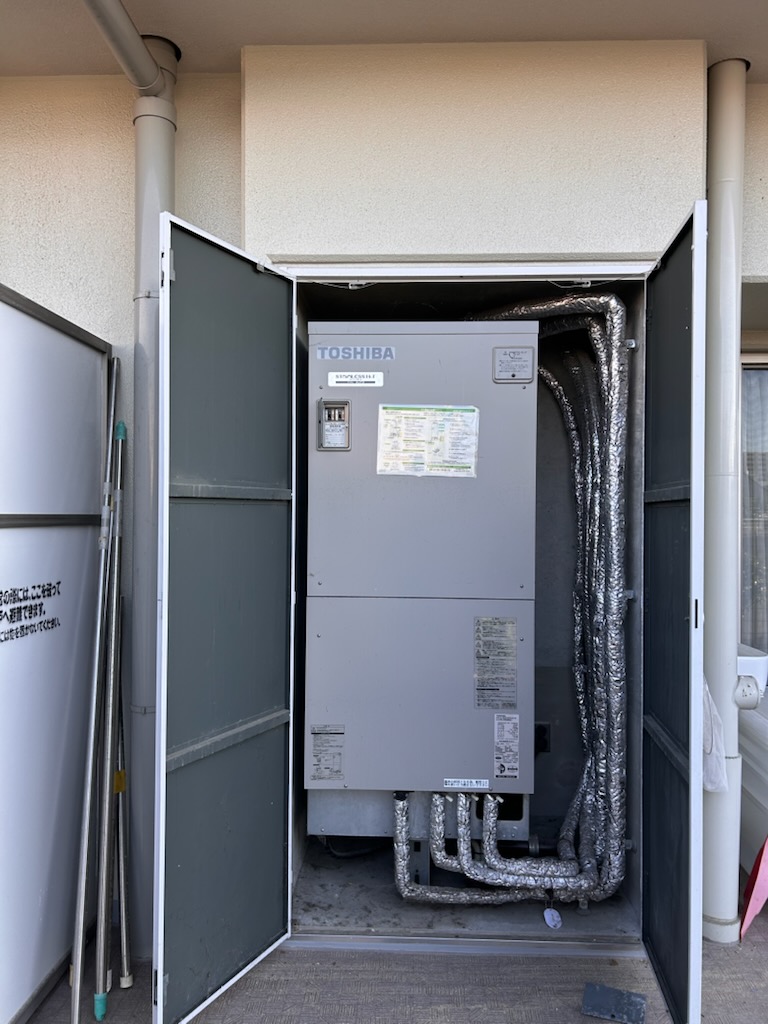 エコキュートは、空気の熱で効率よくお湯を沸かすので、必要なエネルギー(電気)が少なくて済む、ヒートポンプ給湯機です。
